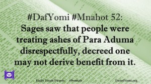 DafYomi, Mnahot #DafYomi #Mnahot 52 Date: September 30, 2018Author: ysspitz #DafYomi #Mnahot 52: Sages saw that people were treating ashes of Para Aduma disrespectfully, decreed one may not derive benefit from it. Share this: Share on X (Opens in new window) X Share on Facebook (Opens in new window) Facebook Like Loading... Related