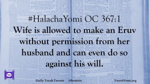 #HalachaYomi OC 367:1 Wife is allowed to make an Eruv without permission from her husband and can even do so against his will.