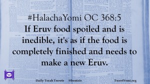 #HalachaYomi OC 368:5 If Eruv food spoiled and is inedible, it’s as if the food is completely finished and needs to make a new Eruv.