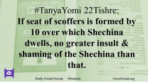 #TanyaYomi 22Tishre: If seat of scoffers is formed by 10 over which Shechina dwells, no greater insult & shaming of the Shechina than that.