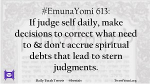 #EmunaYomi 613: If judge self daily, make decisions to correct what need to & don’t accrue spiritual debts that lead to stern judgments.