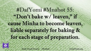 DafYomi, Mnahot #DafYomi #Mnahot 55: Date: October 4, 2018Author: ysspitz #DafYomi #Mnahot 55: “Don’t bake w/ leaven,” if cause Minha to become leaven, liable separately for baking & for each stage of preparation. Share this: Share on X (Opens in new window) X Share on Facebook (Opens in new window) Facebook Like Loading... Related