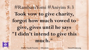 #RambamYomi #Aniyim 8:3 Took vow to give charity, forgot how much vowed to give, gives until he says “I didn’t intend to give this much.”