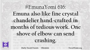 #EmunaYomi 616: Emuna also like fine crystal chandelier hand-crafted in months of tedious work. One shove of elbow can send crashing.