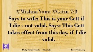 #MishnaYomi #Gitin 7:3 Says to wife: This is your Gett if I die – not valid. Says: This Gett takes effect from this day, if I die – valid.