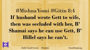 #MishnaYomi #Gitin 8:4 If husband wrote Gett to wife, then was secluded with her, B’ Shamai says he can use Gett, B’ Hillel says he can’t.