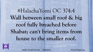 #HalachaYomi OC 374:4 Wall between small roof & big roof fully breached before Shabat; can’t bring items from house to the smaller roof.