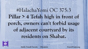 #HalachaYomi OC 375:3 Pillar > 4 Tefah high in front of porch, owners can’t forbid usage of adjacent courtyard by its residents on Shabat.