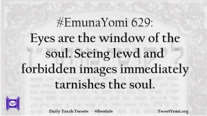 EmunaYomi #EmunaYomi 629 Date: October 19, 2018Author: ysspitz #EmunaYomi 629: Eyes are the window of the soul. Seeing lewd and forbidden images immediately tarnishes the soul. Share this: Share on X (Opens in new window) X Share on Facebook (Opens in new window) Facebook Like Loading... Related