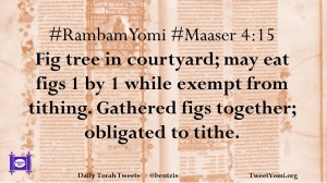 #RambamYomi #Maaser 4:15 Fig tree in courtyard; may eat figs 1 by 1 while exempt from tithing. Gathered figs together; obligated to tithe.
