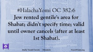 #HalachaYomi OC 382:6 Jew rented gentile’s area for Shabat; didn’t specify time; valid until owner cancels (after at least 1st Shabat).