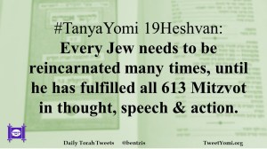 #TanyaYomi 19Heshvan: Every Jew needs to be reincarnated many times, until he has fulfilled all 613 Mitzvot in thought, speech & action.