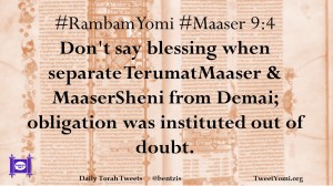 #RambamYomi #Maaser 9:4 Don’t say blessing when separate TerumatMaaser & MaaserSheni from Demai; obligation was instituted out of doubt.
