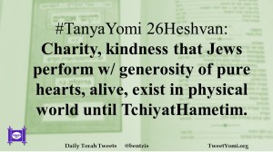 #TanyaYomi 26Heshvan: Charity, kindness that Jews perform w/ generosity of pure hearts, alive, exist in physical world until TchiyatHametim.