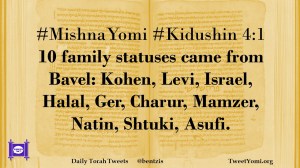 #MishnaYomi #Kiddushin 4:1 10 family statuses came from Bavel: Kohen, Levi, Israel, Halal, Ger, Charur, Mamzer, Natin, Shtuki, Asufi.