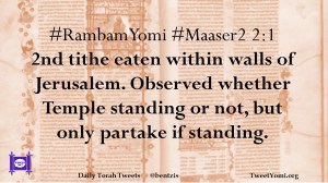 #RambamYomi #Maaser2 2:1 2nd tithe eaten within walls of Jerusalem. Observed whether Temple standing or not, but only partake if standing.