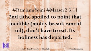 #RambamYomi #Maaser2 3:11 2nd tithe spoiled to point that inedible (moldy bread, rancid oil), don’t have to eat. Its holiness has departed.