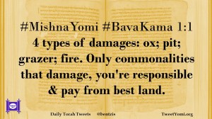 #MishnaYomi #BavaKama 1:1 4 types of damages: ox; pit; grazer; fire. Only commonalities that damage, you’re responsible & pay from best land.