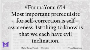 #EmunaYomi 654: Most important prerequisite for self-correction is self awareness. 1st thing to know is that we each have evil inclination.