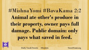 #MishnaYomi #BavaKama 2:2 Animal ate other’s produce in their property, owner pays full damage. Public domain: only pays what saved in feed.