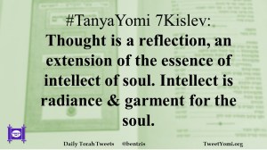 #TanyaYomi 7Kislev: Thought is a reflection, an extension of the essence of intellect of soul. Intellect is radiance & garment for the soul.