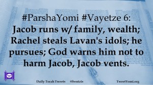 #ParshaYomi #Vayetze 6: Jacob runs w/ family, wealth; Rachel steals Lavan’s idols; he pursues; God warns him not to harm Jacob, Jacob vents.