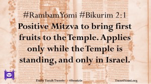 #RambamYomi #Bikurim 2:1 Positive Mitzva to bring first fruits to the Temple. Applies only while the Temple is standing, and only in Israel.
