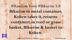 #RambamYomi #Bikurim 3:8 Bikurim in metal container, Kohen takes it, returns container; in reed or grass basket, Bikurim & basket to Kohen.