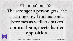 #EmunaYomi 661: The stronger a person gets, the stronger evil inclination becomes as well. As makes spiritual gain, meets harder opposition.