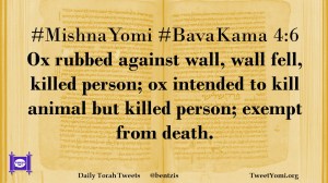 #MishnaYomi #BavaKama 4:6 Ox rubbed against wall, wall fell, killed person; ox intended to kill animal but killed person; exempt from death.