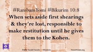 #RambamYomi #Bikurim 10:8 When sets aside first shearings & they’re lost, responsible to make restitution until he gives them to the Kohen.