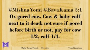 #MishnaYomi #BavaKama 5:1 Ox gored cow. Cow & baby calf next to it dead; not sure if gored before birth or not, pay for cow 1/2, calf 1/4.