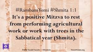 #RambamYomi #Shmita 1:1 It’s a positive Mitzva to rest from performing agricultural work or work with trees in the Sabbatical year (Shmita).