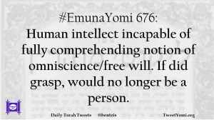 #EmunaYomi 676: Human intellect incapable of fully comprehending notion of omniscience/free will. If did grasp, would no longer be a person.