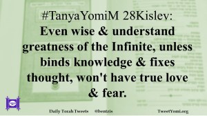 #TanyaYomiM 28Kislev: Even wise & understand greatness of the Infinite, unless binds knowledge & fixes thought, won’t have true love & fear.