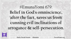 #EmunaYomi 679: Belief in God’s omniscience, after the fact, saves us from cunning evil inclinations of arrogance & self-persecution.