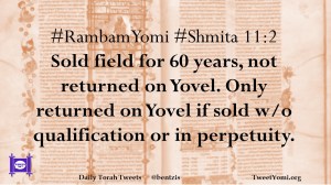 #RambamYomi #Shmita 11:2 Sold field for 60 years, not returned on Yovel. Only returned on Yovel if sold w/o qualification or in perpetuity.