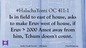 #HalachaYomi OC 411:1 Is in field to east of house, asks to make Eruv west of house, if Eruv > 2000 Amot away from him, Tchum doesn’t count.