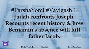 ParshaYomi, Vayigash #ParshaYomi #Vayigash 1 Date: December 9, 2018Author: ysspitz #ParshaYomi #Vayigash 1: Judah confronts Joseph. Recounts recent history & how Benjamin’s absence will kill father Jacob. Share this: Share on X (Opens in new window) X Share on Facebook (Opens in new window) Facebook Like Loading... Related