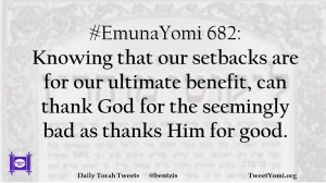 #EmunaYomi 682: Knowing that our setbacks are for our ultimate benefit, can thank God for the seemingly bad as thanks Him for good.