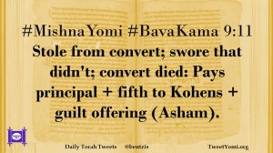 #MishnaYomi #BavaKama 9:11 Stole from convert; swore that didn’t; convert died: Pays principal + fifth to Kohens + guilt offering (Asham).