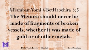 #RambamYomi #BetHabehira 3:5 The Menora should never be made of fragments of broken vessels, whether it was made of gold or of other metals.