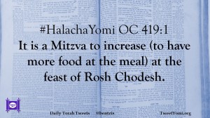 HalachaYomi #HalachaYomi OC 419:1 Date: December 16, 2018Author: ysspitz #HalachaYomi OC 419:1 It is a Mitzva to increase (to have more food at the meal) at the feast of Rosh Chodesh. Share this: Share on X (Opens in new window) X Share on Facebook (Opens in new window) Facebook Like Loading... Related