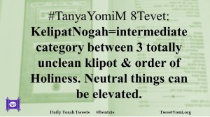 #TanyaYomiM 8Tevet: KelipatNogah=intermediate category between 3 totally unclean klipot & order of Holiness. Neutral things can be elevated.
