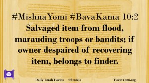 #MishnaYomi #BavaKama 10:2 Salvaged item from flood, marauding troops or bandits; if owner despaired of recovering item, belongs to finder.