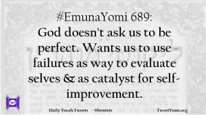 #EmunaYomi 689: God doesn’t ask us to be perfect. Wants us to use failures as way to evaluate selves & as catalyst for self-improvement.