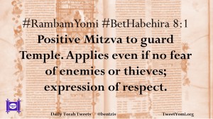 #RambamYomi #BetHabehira 8:1 Positive Mitzva to guard Temple. Applies even if no fear of enemies or thieves; expression of respect.