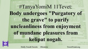 #TanyaYomiM 11Tevet: Body undergoes “Purgatory of the grave” to purify uncleanliness from enjoyment of mundane pleasures from kelipat nogah.