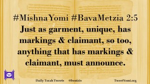 #MishnaYomi #BavaMetzia 2:5 Just as garment, unique, has markings & claimant, so too, anything that has markings & claimant, must announce.