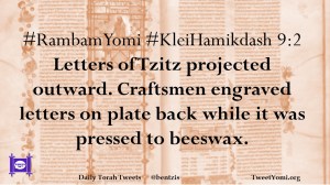 #RambamYomi #KleiHamikdash 9:2 Letters of Tzitz projected outward. Craftsmen engraved letters on plate back while it was pressed to beeswax.